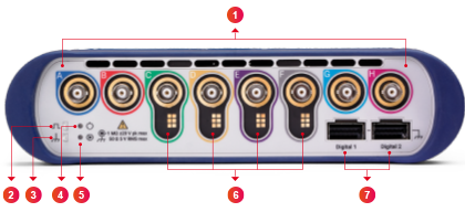 The MSO capability of the PicoScope 6000E consists of a detachable active MSO module, powered from the oscilloscope, with eight permanently attached flying leads on MSO probes, which in turn are connected to the circuit under test. The MSO module is connected via a 0.5 m digital interface cable to one of the two digital interface connectors on the front of the oscilloscope. All models of the PicoScope 6000E support the MSO function. The MSO probes and accessories allow connection to pin headers with mixed signal and ground connections in any combination.
