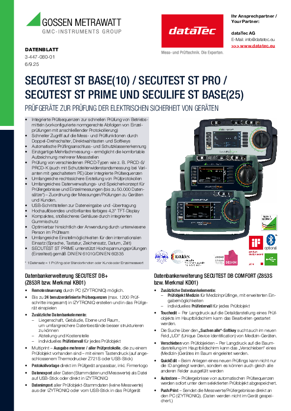 Prüfgerät mit Bluetooth und normgerechten Prüfabläufen zur Prüfung der elektrischen Sicherheit von Geräten nach Reparatur und anläßlich einer Wiederholungsprüfung (DGUV Vorschrift 3, MPBetreibV) optimiert für IZYTRONIQ.