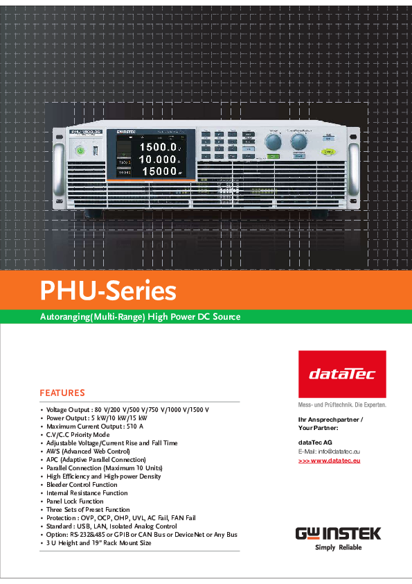 Netzgerät, DC, Multi Range, 1 Kanal, 1000 V, 45 A, 15 kW, USB, LAN, Iso. Analog Control