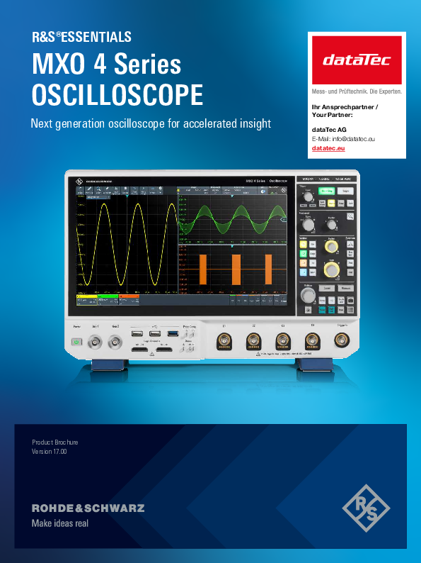 Die Oszilloskope der R&S MXO 4-Serie ermöglichen präziseste Messungen und bestechen durch ihre schnelle Echtzeit-Update-Rate von 4,5 Millionen waveforms/s, den 12-Bit-ADC sowie den maximale Erfassungsspeicher von 800 Mpoints.