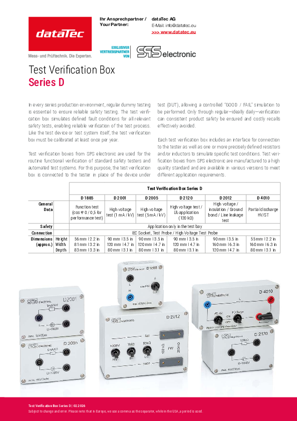 Exklusiv bei dataTec erhalten Sie die Testsysteme und Prüfgeräte der SPS electronic GmbH aus Schwäbisch Hall. SPS zählt zu den Marktführern in der Planung, Entwicklung und Fertigung von Messgeräten und Prüfgeräten sowie von Testeinrichtungen. Höchste Qualität - Made in Germany.
