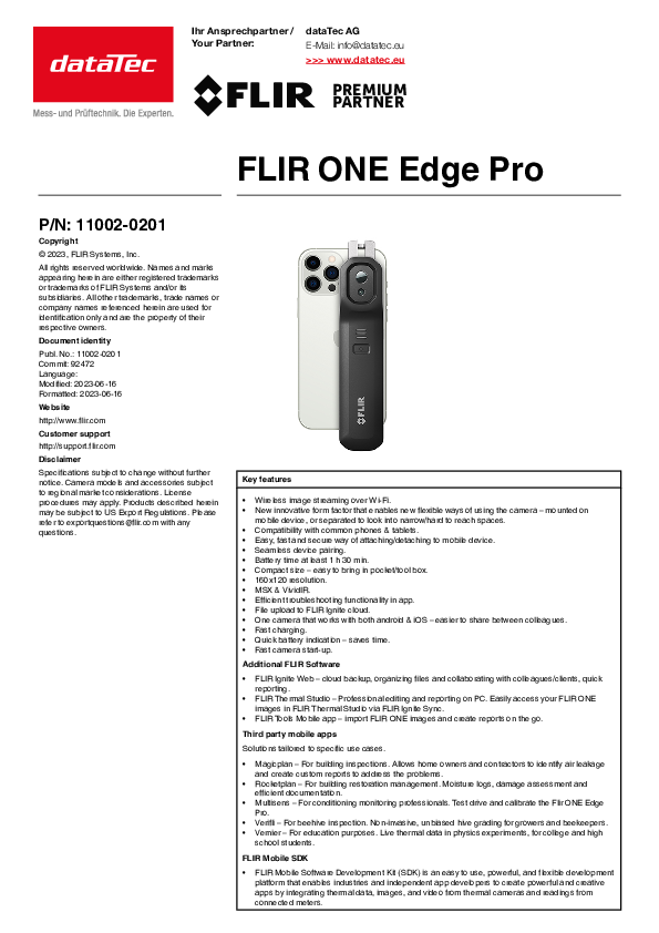 With the FLIR ONE Edge Pro you have the right instrument at hand to solve your measurement task, be it in the field of manufacturing, maintenance or the maintenance of plants and buildings.