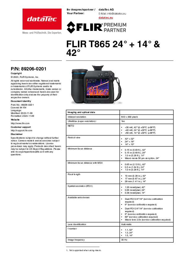 The thermal imager T865 offers a temperature measurement accuracy of up to ± 1 ° C / ± 1%. The cameras of the T800 series are compatible with the FLIR AutoCal interchangeable lenses, for example to simplify the transition from scanning large areas with the 42 ° lens to inspecting distant targets with the 6 ° telephoto lens.