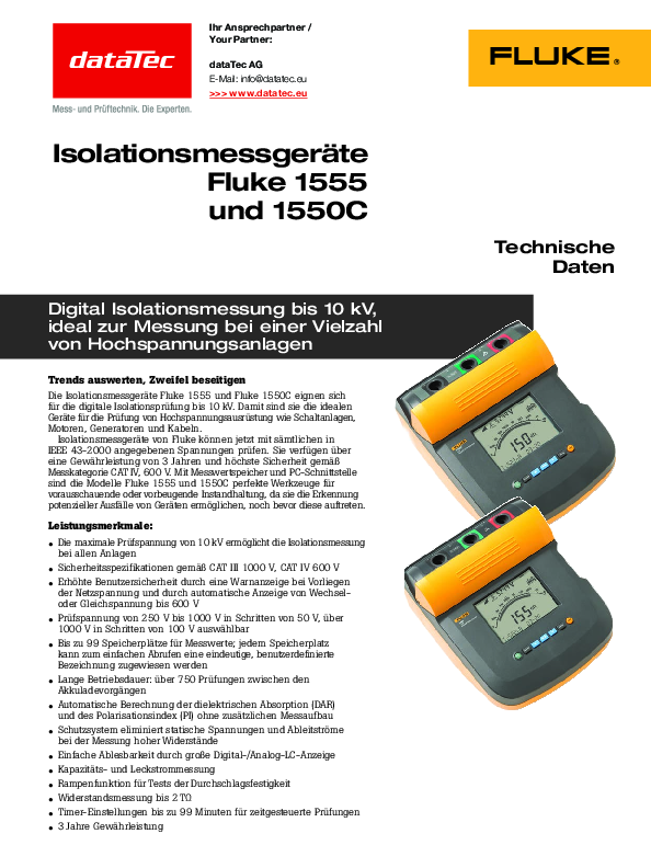 Mit Messwertspeicher und PC-Schnittstelle ist das 1550C ein perfektes Werkzeuge für vorausschauende oder vorbeugende Instandhaltung, denn sie erkennen potenzielle Ausfälle von Geräten, bevor diese auftreten.