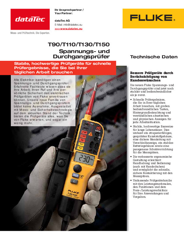 T110/VDE | Voltage and continuity tester, LED, 12V-690V, CAT III 690, CAT IV 600V (FLUKE-T110/VDE)