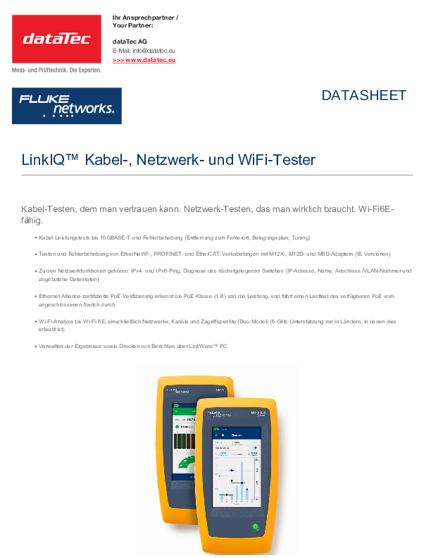 FLUKE Networks LIQ-DUO-H6-EU | LinkIQ Duo cable, Wi-Fi and network tester, checking cable performance up to 10 Gbit / s