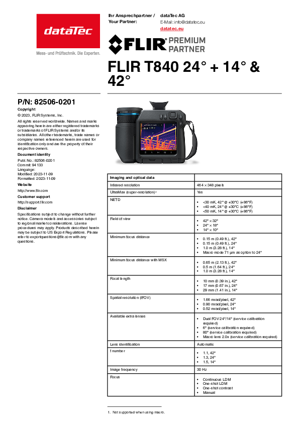 The Flir T840 noticeably simplifies and accelerates the internal and external monitoring of electrical systems, the identification of defective components and many other thermal tests. Carry out tests, inspections and maintenance quickly, easily, flexibly and without excessive physical strain. The bright, 4-inch color LCD display, including built-in viewfinder, enables you to carry out inspections even in the most difficult lighting conditions. Thanks to the high resolution of 464 x 348 pixels, you can carry out inspections from a safe distance. Of course, the Flir T840 is equipped with FLIR Vision Processing ™, MSX® and UltraMax® and thus provides you with an optimized resolution with up to 645,888 pixels.
