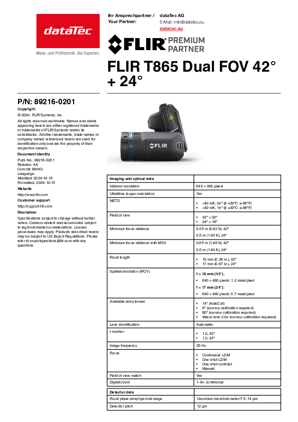 The thermal imaging camera T865 offers a temperature measurement accuracy of up to ±1°C / ±1%. The T800 Series cameras are compatible with FLIR AutoCal interchangeable lenses.