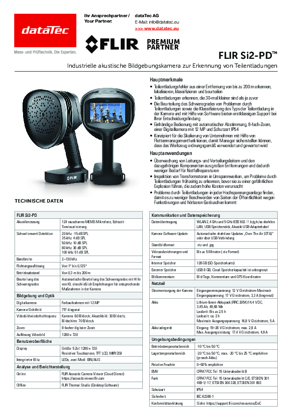 The FLIR Si2-PD is an industrial acoustic imaging camera specifically designed to detect partial discharge (PD). It provides an effective solution to detect and respond to PD, helping to reduce maintenance costs for electrical equipment.