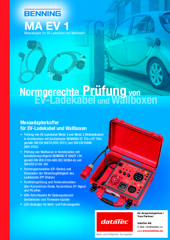 - Dokumentation & Qualitätssicherung – durch automatisierte Prüfabläufe in Verbindung mit BENNING ST 755+/760+.