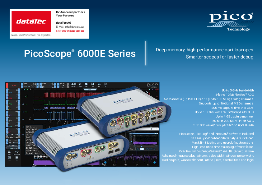 Die PicoScope 6000E Serie sind die fortschrittlichsten Echtzeit-Oszilloskope im Pico Portfolio – und das zu einem hervorragenden Preis-Leistungs-Verhältnis.