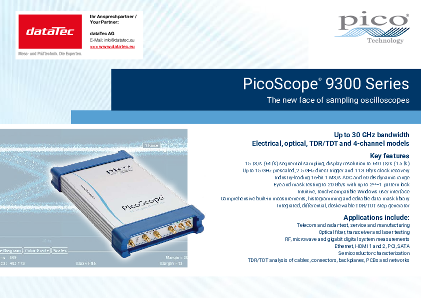 Die Bandbreite von 20 GHz erlaubt Messungen einer Pulsflanke von 17,5 ps, wobei der sehr geringe Abtast-Jitter eine Zeitauflösung von 64 fs bietet. Die sequentielle Samplingrate von 1 MS/s erlaubt ein schnelles Zusammensetzen des abgetasteten Signals, eines Augendiagramms oder eines Histogramms.