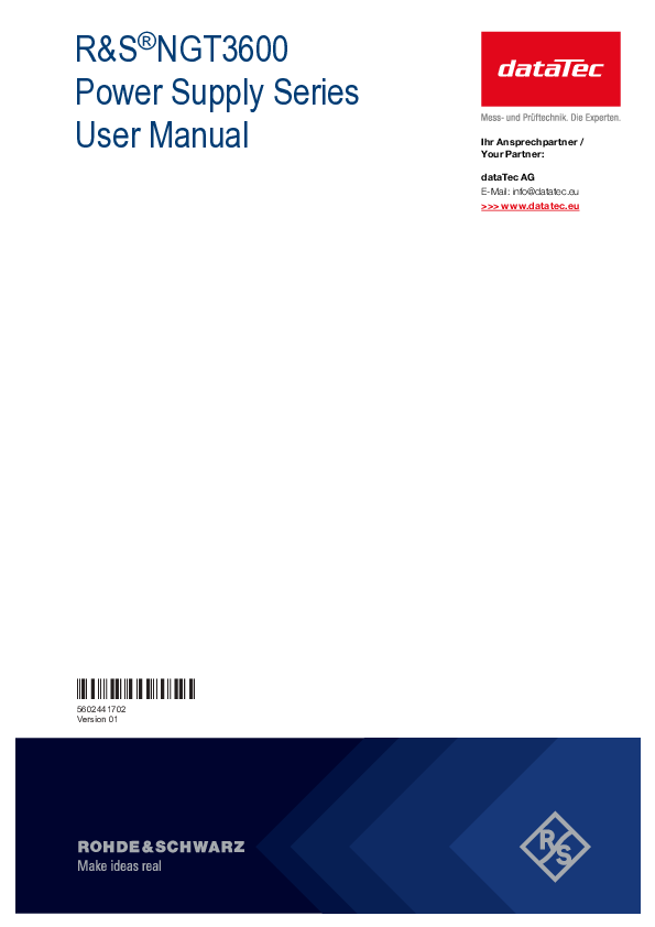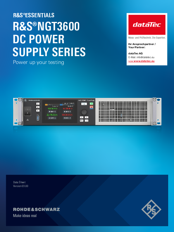 Die Rohde & Schwarz NGT3600 Serie ist eine leistungsstarke DC-Stromversorgungsplattform für anspruchsvolle Labor- und Testsysteme. In einem kompakten, direkt 19"-rackfähigen Gehäuse liefert sie wahlweise ein oder zwei vollständig galvanisch getrennte Ausgänge mit bis zu 1800 W pro Kanal. Dank moderner Autoranging-Architektur steht die Leistung flexibel über einen breiten Spannungs- und Strombereich zur Verfügung – ideal für Anwendungen, in denen sowohl hohe Ströme bei niedrigen Spannungen als auch hohe Spannungen bei geringeren Strömen benötigt werden.