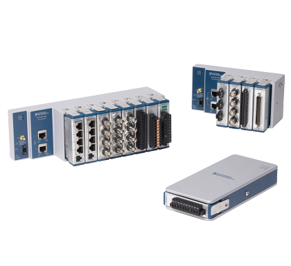 CompactDAQ-Systeme lassen sich optimal an individuelle Testanforderungen anpassen und bieten eine direkte Sensoranbindung. Sie eignen sich für DAQ-Anwendungen mit einer breiten Streuung von Messparametern, die Skalierbarkeit und Flexibilität erfordern. Aufgrund der Robustheit der Hardware eignet sich das tragbare Testsystem für verteilte Anwendungen mit hoher Kanalanzahl. In einem CompactDAQ-System wird ein Chassis über USB oder Ethernet mit dem PC verbunden und mit sensorspezifischen, konditionierten I/O-Modulen bestückt, die für DAQ-Anwendungen optimiert sind.