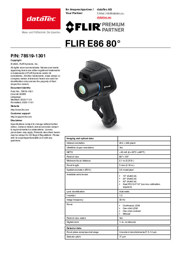 The Flir thermal imaging camera E86 of the EXX series helps to quickly identify thermal problems in electrical and electronic systems, identify mechanical faults and carry out preventive maintenance measures.