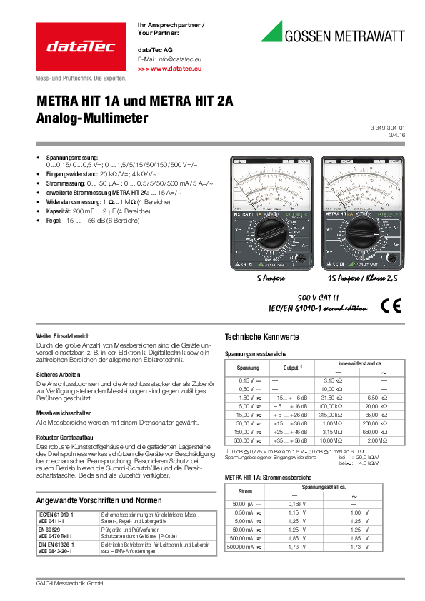Due to the large number of measuring ranges, this multimeter can be used universally, e.g. B. in electronics, digital technology and in numerous areas of general electrical engineering. The connecting sockets and the connecting plugs of the measuring lines available as accessories are protected against accidental contact. All measuring ranges are selected with a rotary switch.