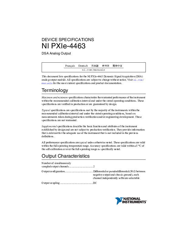 ISO 17025 Calibration Certificate for PXIe-4463 (783086-01-ISO)