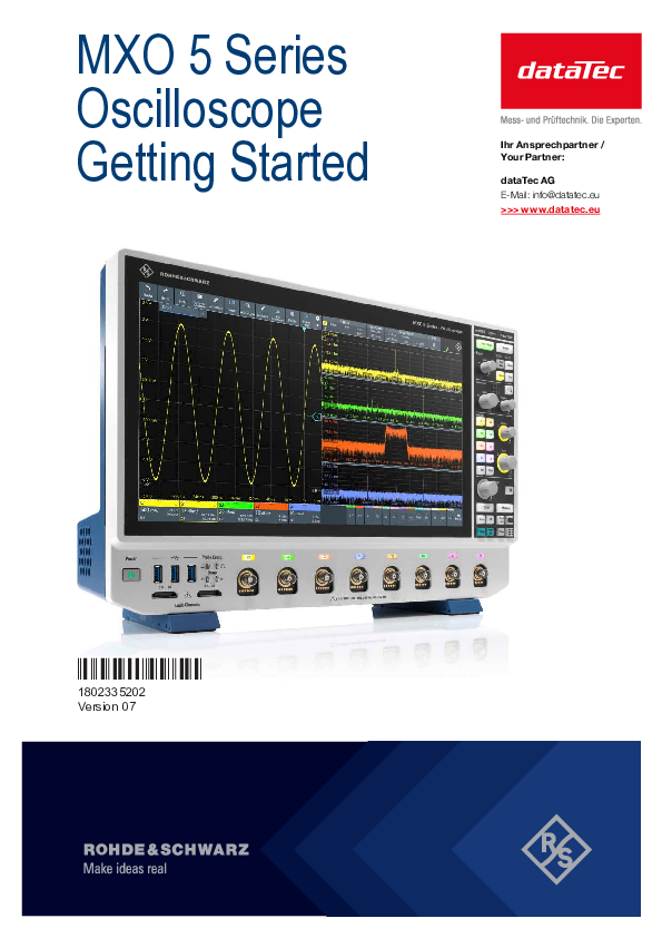 The Rohde & Schwarz MXO 5 Series oscilloscopes offer industry-leading technology that accelerates your understanding and testing of electronic systems. The MXO 5 Series includes both 4- and 8-channel models with bandwidths of up to 2 GHz, a maximum sampling rate of up to 5 GSa/s, an acquisition rate of up to 4.5 Mwfm/s, and a vertical resolution of 12 bit ADC (18 bit in HD mode).