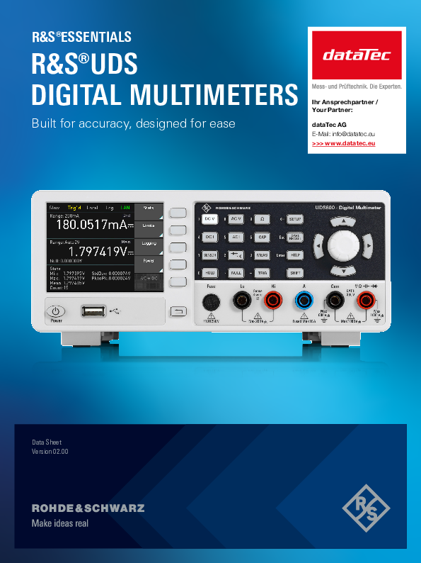 The UDS series from Rohde & Schwarz comprises compact digital multimeters that have been specially designed for use in general laboratories, production and training facilities. This series offers a balanced combination of high accuracy, functional versatility and user-friendly design, making it ideal for both general use and demanding test tasks in the production environment. The UDS series is the perfect successor to the HMC8012 from Rohde & Schwarz.