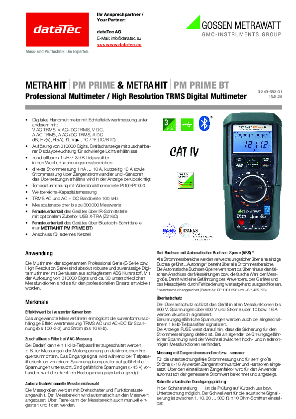 | Modèle: | Metrahit PM PRIME BT |