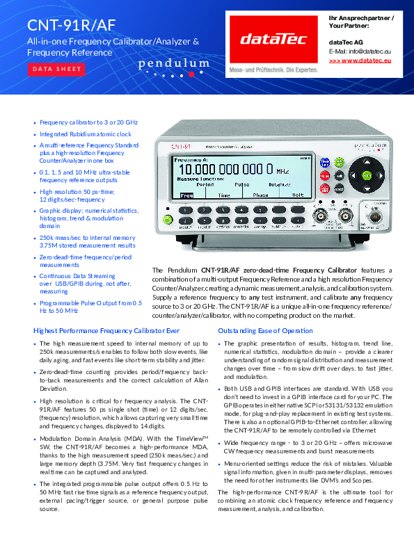 | Modèle: | CNT-91R Référence temporelle au rubidium avec entrée C 3GHz |