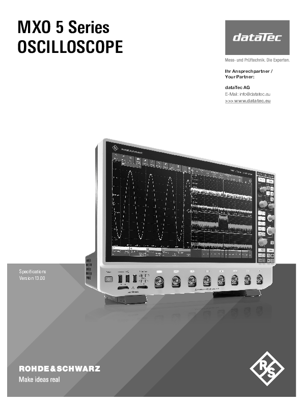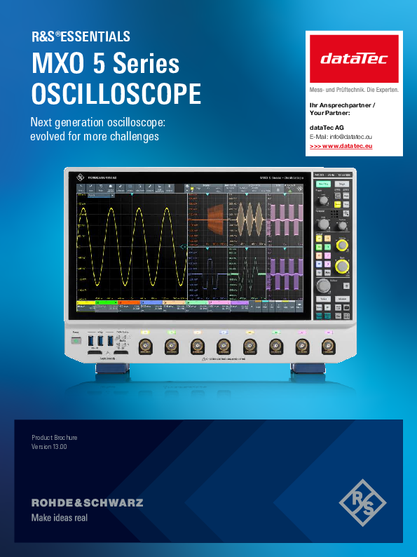 Les oscilloscopes de la série MXO 5 de Rohde & Schwarz offrent une technologie de pointe qui accélère votre compréhension et le test des systèmes électroniques. La série MXO 5 comprend des modèles à 4 et 8 voies avec des bandes passantes allant jusqu'à 2 GHz, une fréquence d'échantillonnage maximale allant jusqu'à 5 GSa/s, une vitesse d'acquisition allant jusqu'à 4,5 Mwfm/s et une résolution verticale de 12 bits ADC (18 bits en mode HD).