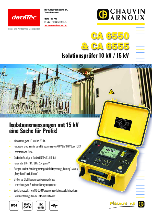 FÜR DIE EXPERTEN! Der Isolationsprüfer C.A 6555 ist in seinem baustellentauglichen Gehäuse bestens geeignet für die Isolationsprüfung von Anlagen und Geräten vor Ort, aber auch für Isolationsprüfungen in der Fertigung, bei Wiederholungsprüfungen oder bei Wieder-Inbetriebnahmen von Anlagen.