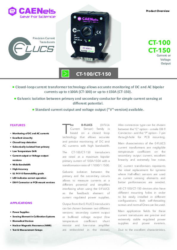 CAENels CT100C | Current transformer, 100A, 0-FLUCS, DC- 500kHz, current output with DB-9 connection. Ideal in combination with power meters / power meters for measuring large currents.