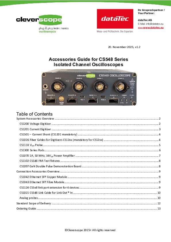 Cleverscope is a renowned manufacturer of high-quality oscilloscopes and other measurement instruments for electronic applications. Their products are characterized by innovative technology, user-friendliness, and precise signal analysis.