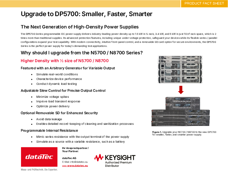 With the power supply series N8700A, Keysight (formerly Agilent's electronic measurement technology) offers DC power supplies with very high performance in a perfect price-performance ratio with a height of only two height units (2U).