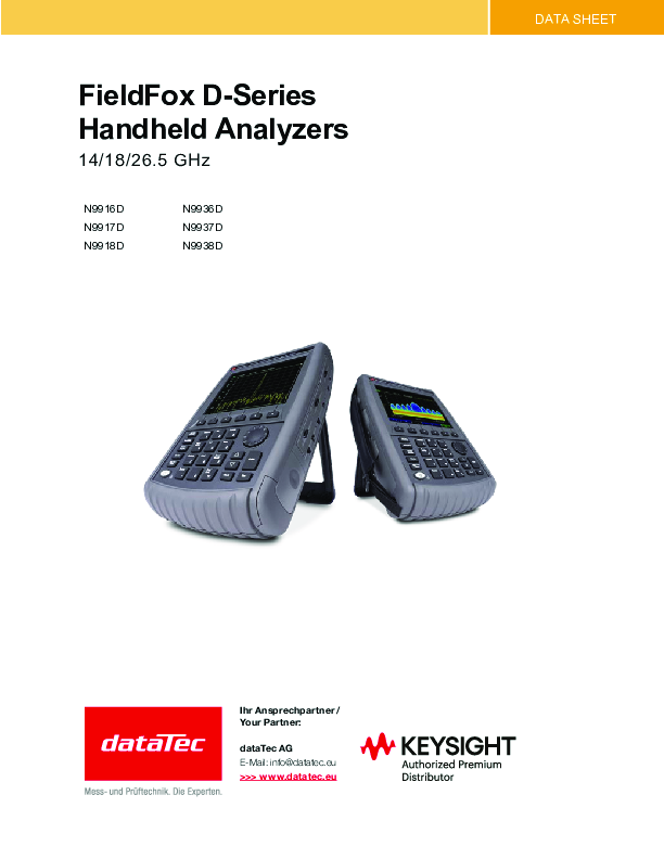 The Keysight FieldFox D-Series represents the latest generation of professional handheld analyzers for field use and combines the highest measurement performance with state-of-the-art software-defined radio functionality. The devices cover frequency ranges up to 54 GHz and offer a real bandwidth of up to 120 MHz - ideal for 5G-FR1/FR2 tests, satellite communication, radar, EMC and EMF measurements as well as demanding spectrum analyses in military or industrial environments.