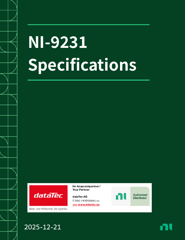 The NI-9231 is a high density channel sound and vibration measurement module suitable for measurements with Integrated Electronic Piezoelectric (IEPE) and non-IEPE sensors such as accelerometers, tachometers, and proximity sensors. It enables measurements with a large dynamic range for modern measurement microphones and accelerometers as well as simultaneous sampling. The NI-9231 has a TEDS input path and a 2 mA IEPE excitation source that can be turned on and off, eliminating the need for external sensors and simplifying the data acquisition system.