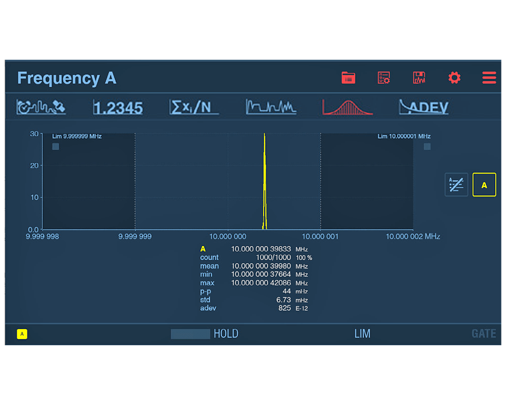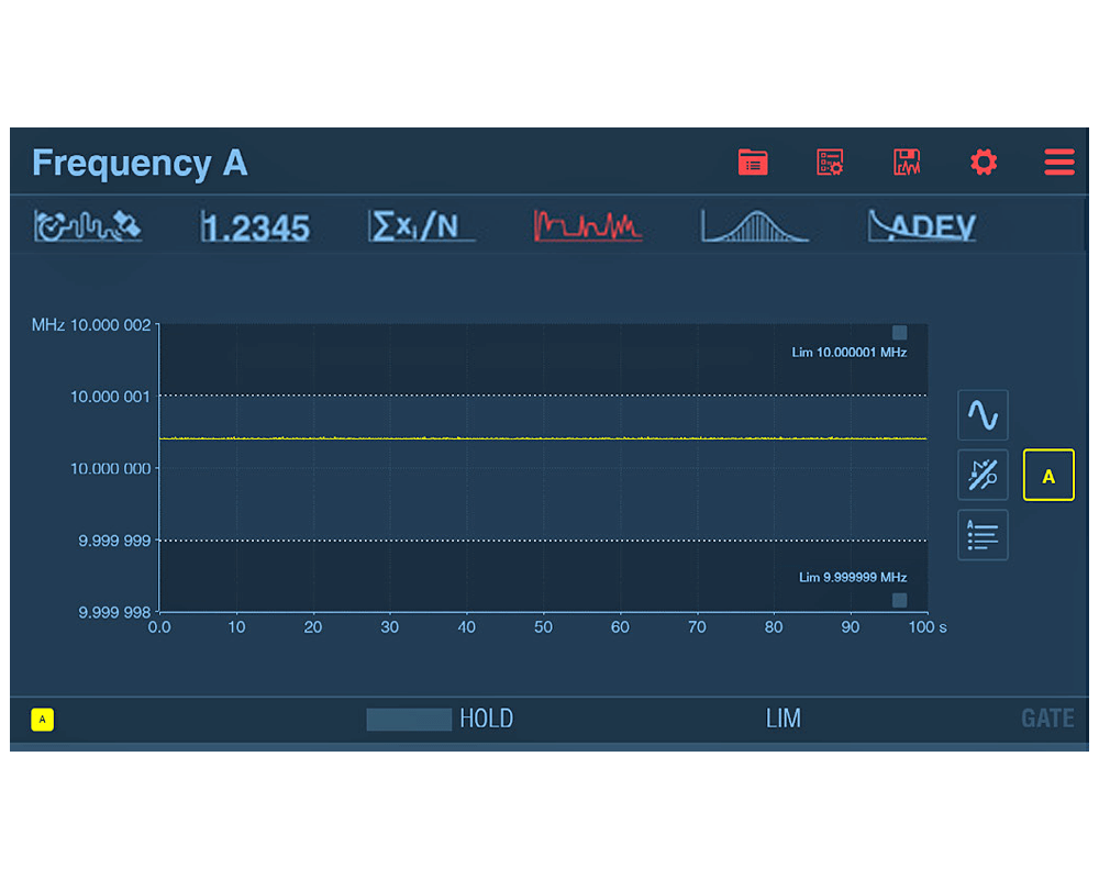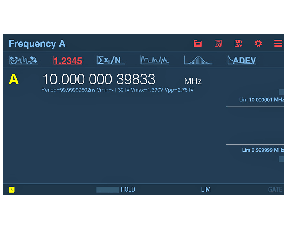 An outstanding feature of the FTR-210R is its frequency calibration capability. Thanks to the optional input for frequency measurements up to 400 MHz, the device turns into a powerful frequency calibrator that can perform measurements with a resolution of up to 12-13 digits per second. This calibration function makes it possible to record frequency-dependent measured values such as frequency, period, pulse width and rise/fall time with exceptional precision. The internal memory function allows the storage of up to 32 million measured values per session and up to 1 billion measured values in non-volatile memory.