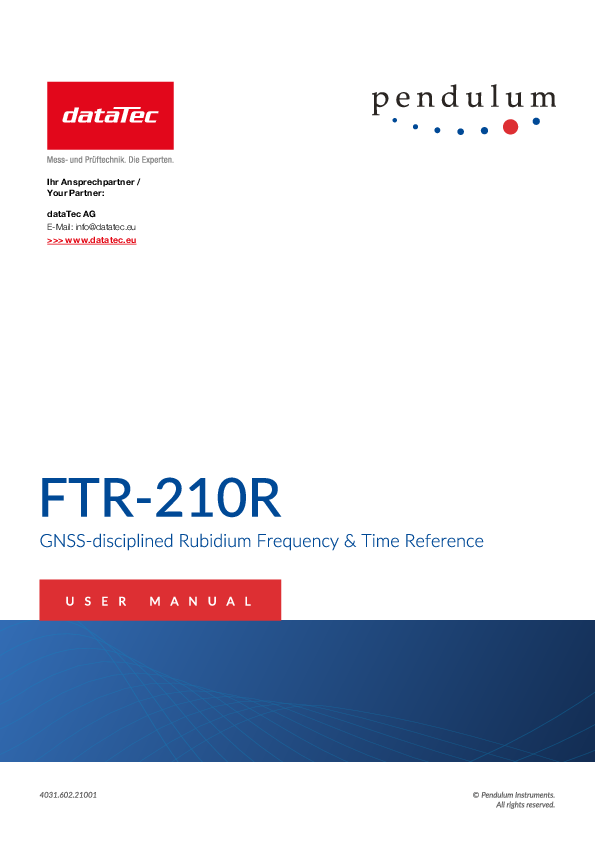 The Pendulum FTR-210R is a GNSS synchronized frequency and time reference with outstanding technical features and the ability to provide highly accurate and stable time and frequency signals. This device has been specially developed to serve as a calibration standard in laboratory environments and offers exceptional flexibility through various outputs and options.