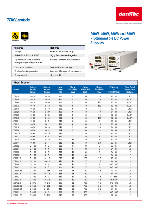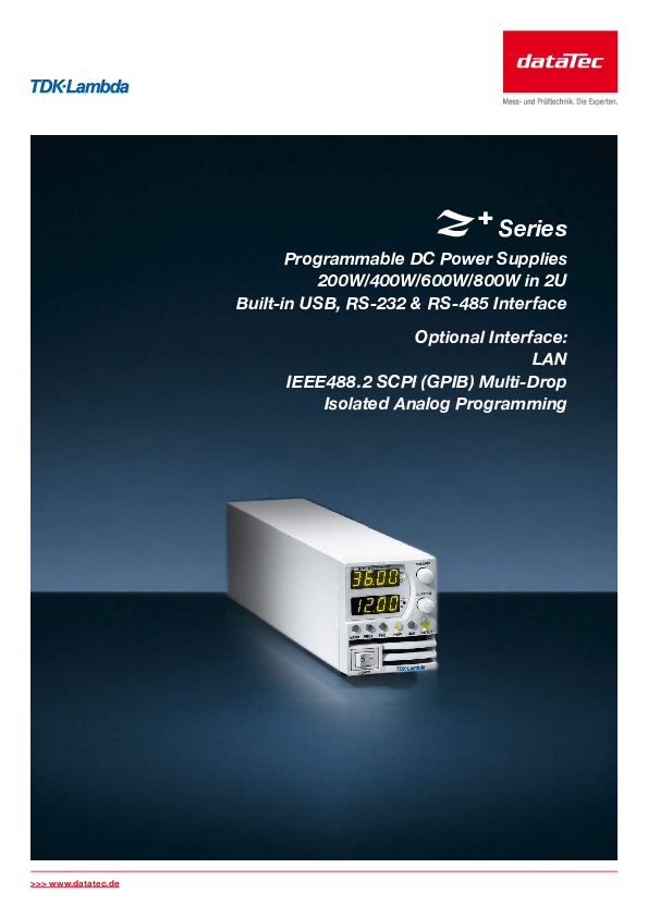 The power supply of the Z + series from TDK-Lambda with a height of 2 U is a third smaller, 40% lighter and offers 50% more power density than comparable products on the market.