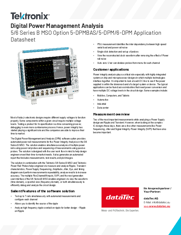 Tektronix 5-DPMBAS | Installed option; Basic Digital Power Management Analysis And Debug Solution - Tektronix MSO 5 series