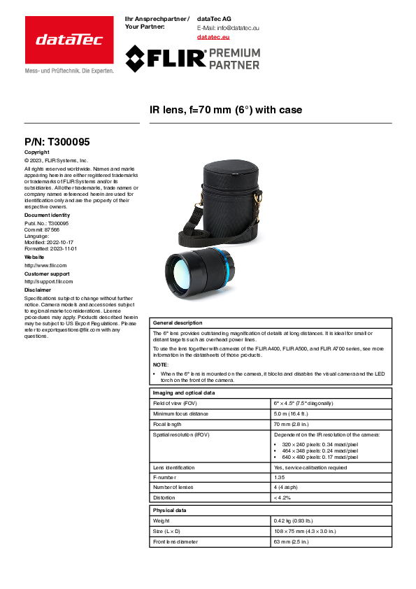 Ideal for taking pictures from afar for FLIR T530, T540 and T840 thermal imaging cameras.