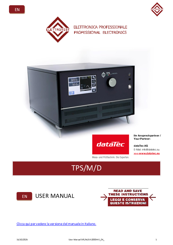 Die Geräte sind leistungsbegrenzt, der Ausgang ist kurzschlussfest und für Dauerleistung konzipiert, ein thermischer Überlastschutz ist Standard. Die Vorgabe der Ausgangsspannung und der Frequenz erfolgt über die Folientastatur auf der Frontseite oder über optionale Schnittstellen.