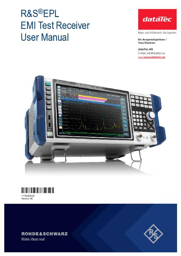 Der Rohde & Schwarz Funkstörmessempfänger EPL1000 ist ein »Full-Compliance Analyzer« für schnelle und präzise Identifizierung von elektromagnetischen Störungen (EMI) von 5 kHz bis 30 MHz. Typische Anwendungsgebiete sind Pre-Compliance-Messungen, Vorzertifizierungen und Zertifizierungen nach IEC, EN, CISPR und FCC.
