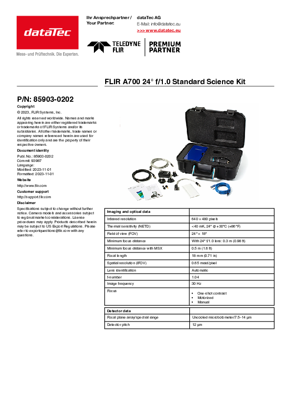 Ganz gleich, wie Sie die FLIR A700 einsetzen, das Zusammenspiel der verschiedenen Komponenten überzeugt in vielen Szenarien. Die motorgetriebene Fokus-Steuerung und die Konnektivität der Wärmebildkamera bieten einen nie dagewesenen Komfort. Das 24-Grad-Objektiv des Standardsets bietet ein gewaltiges Sichtfeld, von dem Forschungs- und Entwicklungsanwendungen enorm profitieren.