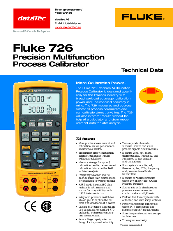 In diesem Set erhalten Sie den Fluke 726 inklusive 1 Jahr Fluke Premium Care gratis.