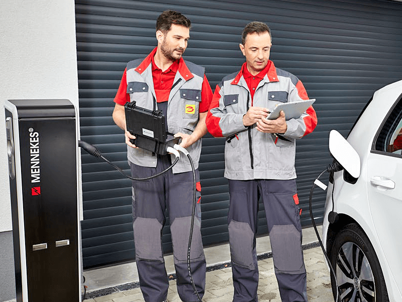 Das Prüfgerät ist für die Überprüfung des Funktionsverhaltens von Ladesäulen und Elektrofahrzeugen mit Anschlussbuchse Typ 2 (Mode 3 Laden) bestimmt.