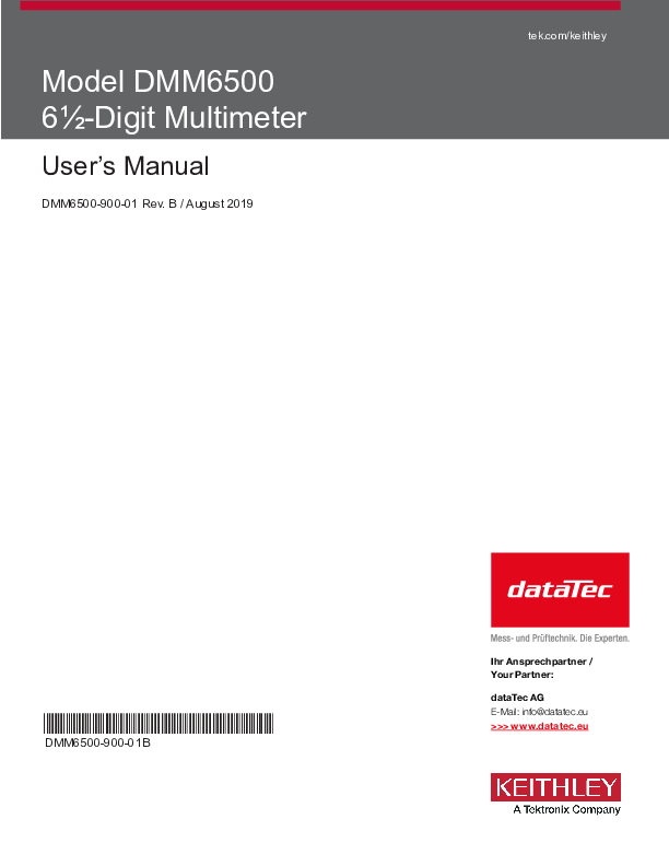 Das DMM6500 von Keithley ist ein hochmodernes Labor-/System-Digitalmultimeter. Sein herausragendes Merkmal ist das großzügige 5-Zoll 6½-stellige Touchscreen-Display, das eine intuitive Interaktion und klare Visualisierung der Messdaten bietet. Ideal sowohl für das Labor als auch für die Systemintegration gewährleistet dieses DMM präzise Ergebnisse über 15 Messfunktionen, einschließlich Kapazität und verschiedenen Temperatursensoren (RTD, Thermistor, Thermoelement).