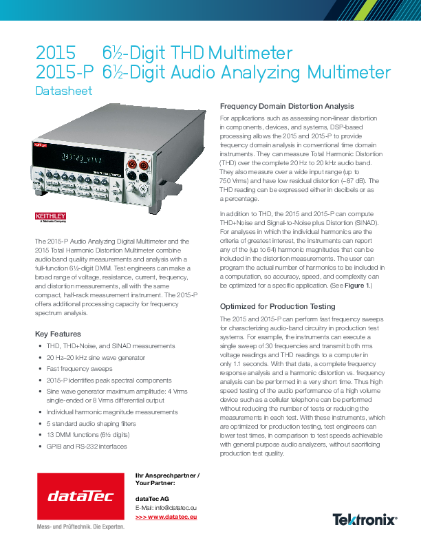 Keithley 2015-P/E | Lagerabverkauf - Audio Analyzing Digital Multimeter @ 220V (DT2666_2305_L)