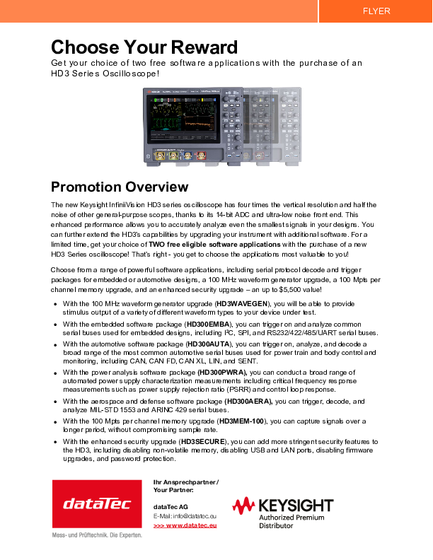 Bereits seit 1999 verbindet dataTec und Keysight Technologies eine starke Partnerschaft. Kein anderes Unternehmen bietet ein so breites Spektrum an Messtechnik, Prüftechnik sowie Lösungen für unsere vernetzte Welt. Mit Messinstrumenten von Keysight sind auch Sie bestens gerüstet für die Aufgaben von heute und morgen.