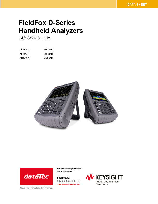 Die Keysight FieldFox B-Serie vereint Kabel- & Antennentester (CAT), Vektor-Netzwerkanalysator (VNA) und Spektrumanalysator (SA) in einem robusten, batteriebetriebenen Handgerät. Die Analyzer sind für den Feldeinsatz konzipiert: stoßfest, staub- und spritzwassergeschützt, mit großem, bei Sonnenlicht gut ablesbarem Display, großen Tasten (auch mit Handschuhen bedienbar) und field-swappable Akku für mehrere Stunden Messbetrieb. Dank CalReady ist das Gerät nach dem Einschalten sofort messbereit; optionale ECal-Module beschleunigen präzise Kalibrierungen. Für anspruchsvolle Anwendungen stehen Software-Optionen wie Real-Time Spectrum Analysis (RTSA) bis 120 MHz, IQ-Analyzer/Streaming, Noise Figure, Puls-Messungen, EMF/EMI sowie OTA-Messungen (LTE/5G NR) zur Verfügung. Typische Einsatzgebiete sind Installation, Fehlersuche und Wartung von Mobilfunk-, SAT-, Radar-, Broadcast-, WLAN- und Industrie-RF-Systemen – vom Kabelabschluss über Filter/Verstärker bis hin zur Über-die-Luft-Analyse.
