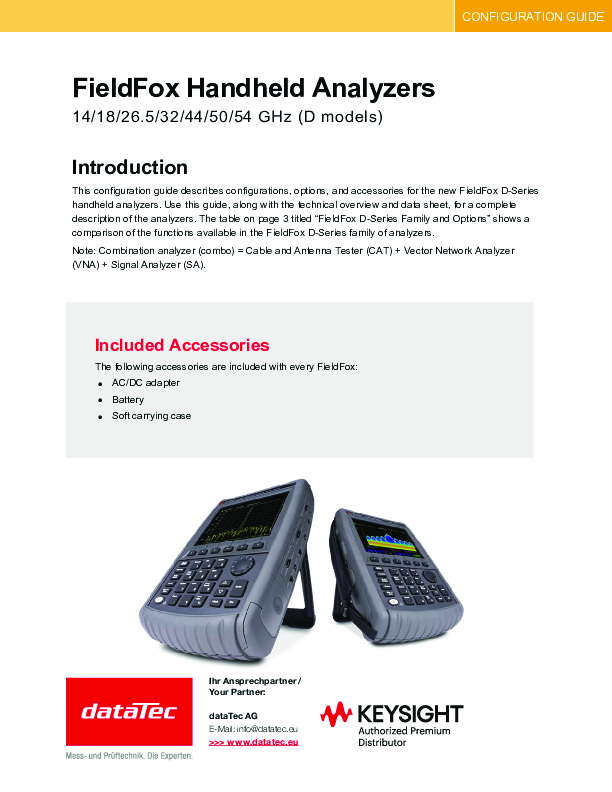 Die Keysight FieldFox D-Serie repräsentiert die neueste Generation professioneller Handheld-Analyser für den Feldeinsatz und kombiniert höchste Messperformance mit modernster Software-Defined-Radio-Funktionalität. Die Geräte decken Frequenzbereiche bis 54 GHz ab und bieten eine reale Bandbreite von bis zu 120 MHz – ideal für 5G-FR1/FR2-Tests, Satellitenkommunikation, Radar, EMV- und EMF-Messungen sowie anspruchsvolle Spektrumanalysen im militärischen oder industriellen Umfeld.