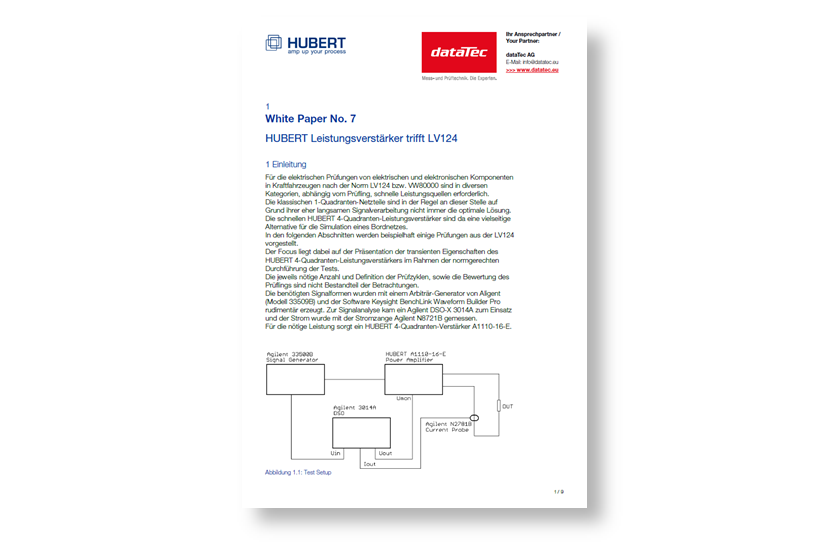Die HUBERT Leistungsverstärker wurde speziell für die Durchführung elektrischer Prüfungen nach der Norm LV124 und VW8000...