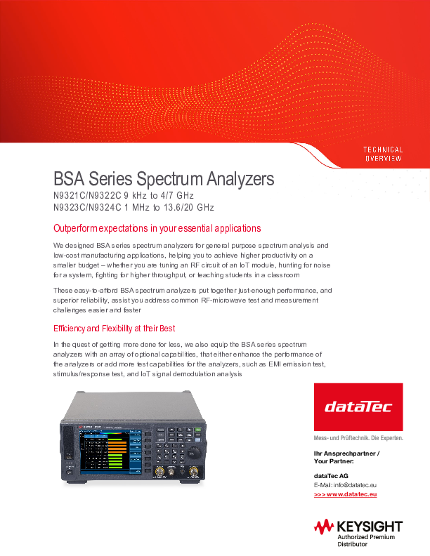 Sie erhalten die Keysight Basic Spectrum Analyzers in vier Varianten. Neben der hier vorgestellten Variante erhalten Sie den BSA noch mit einer Bandbreite von bis zu 4 GHz (N9321C), mit bis zu 7 GHz (N9322C) sowie mit bis zu 20 GHz Bandbreite (N9324C).