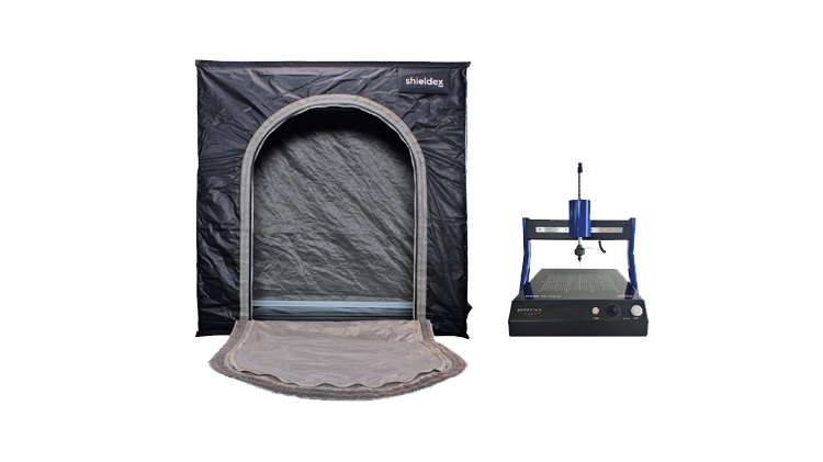 dataTec und Shieldex präsentierten auf der EMV-Fachmesse in Stuttgart ein neues Abschirmzelt für den Pendulum Scanner SC...
